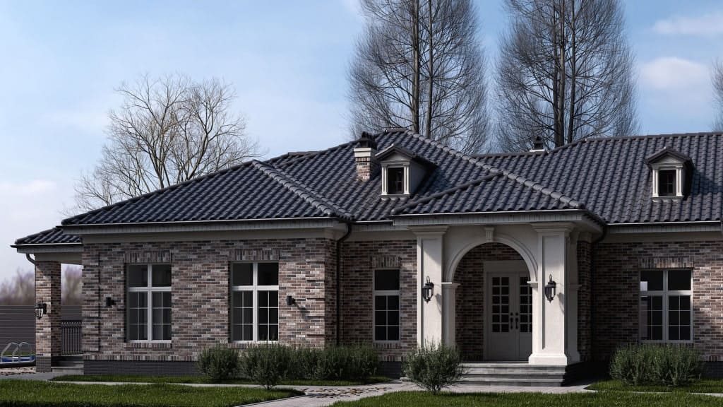 Сложное сочетание оттенков серого кирпича, от светлого до почти черного. Данное исполнение добавляет дому своеобразной самобытности и уюта.